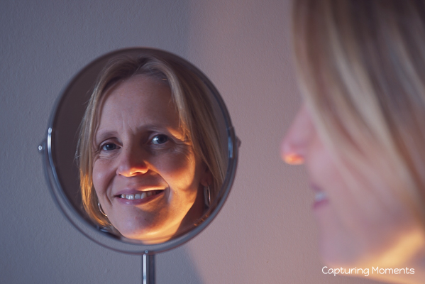 Met mijn snoet tegen de camera gedrukt.